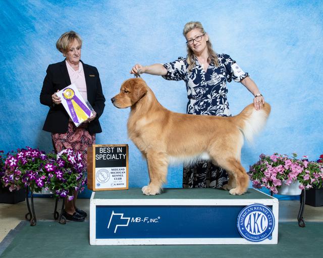 Malone finished his AKC Championship at 18 months old all breeder/owner/handled from the bred by class. Malone has already won several best of breeds at his young age, look for Malone in the specials ring this Fall.